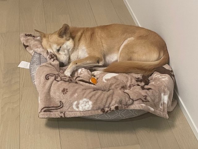 そして、朝の散歩に行きご飯を食べたら、おやすみタイム。