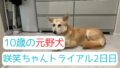 お散歩中は明らかに嬉しそう!という様子は見られませんが、しっぽの力も抜けて、ニオイ取りをして、お水を飲み、おやつを食べ……と外を満喫しているようです。