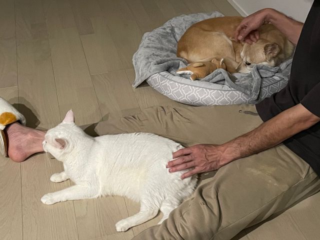 旦那が近づいても逃げることが少なくなり、さえちゃんのペースで徐々に慣れていっているようです。