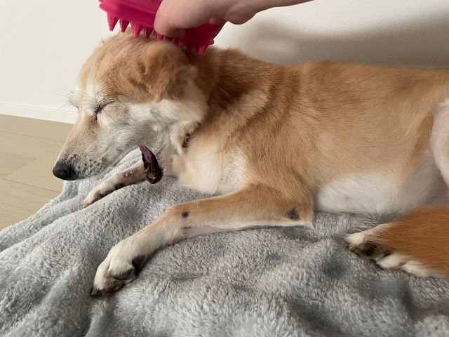 嫌がるどころか、気持ちよくて眠そうな顔をしています。