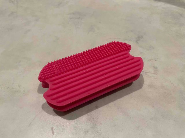 そんなビビりな保護犬でも、リラックスしてブラッシングできる方法はないかと考えていたときに見つけたのが、ファンタジーワールドの「スクラバーブラシダブル」です。