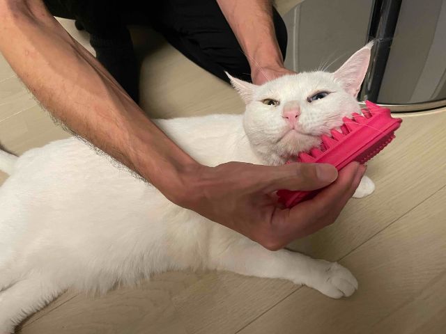 そこで、スクラバーブラシをおすすめして、実際に猫にも使ってもらいました。