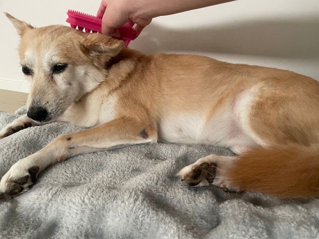 この勢いで背中やお腹、足周りのブラッシングをしましたが、いつもより嫌がりません。